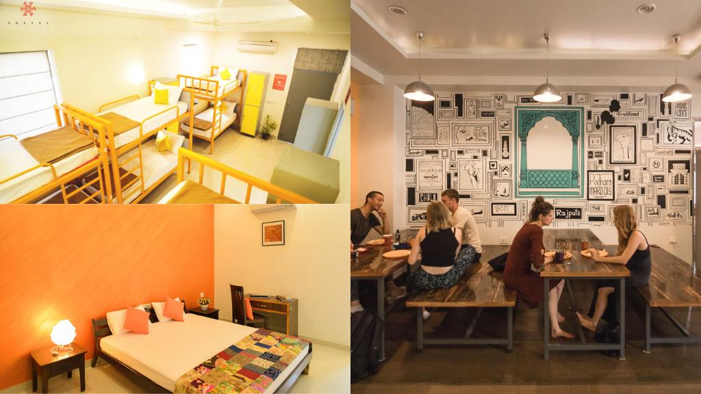 Meet Zostel Jaipur, sitting right at the heart of the Pink City, just a stoneâs throw away from the iconic spots of Jaipur. Inside, the colourful decor reflects the cityâs quirky vibe, where you can play, chill, and meet fellow wanderers from all over the globe. Chillax in the cosy dorms or get yourself some privacy in the cushy private rooms, and while youâre at it, soak in the splashes of Wall Art. Oh, and when you lace up your boots and hit the outdoors, heritage sights, food walks, and hidden hiking & biking trails await.